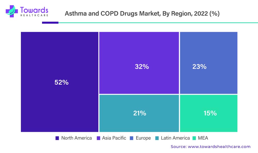 The above-mentioned graph denotes the Asthma And COPD Market By Region, 2022 (%)