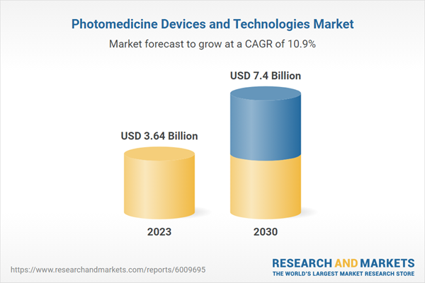 The global photomedicine devices and technologies market size is expected to reach USD 7.4 billion in 2030 and is anticipated to exhibit a growth rate of 10.9% during 2024 to 2030