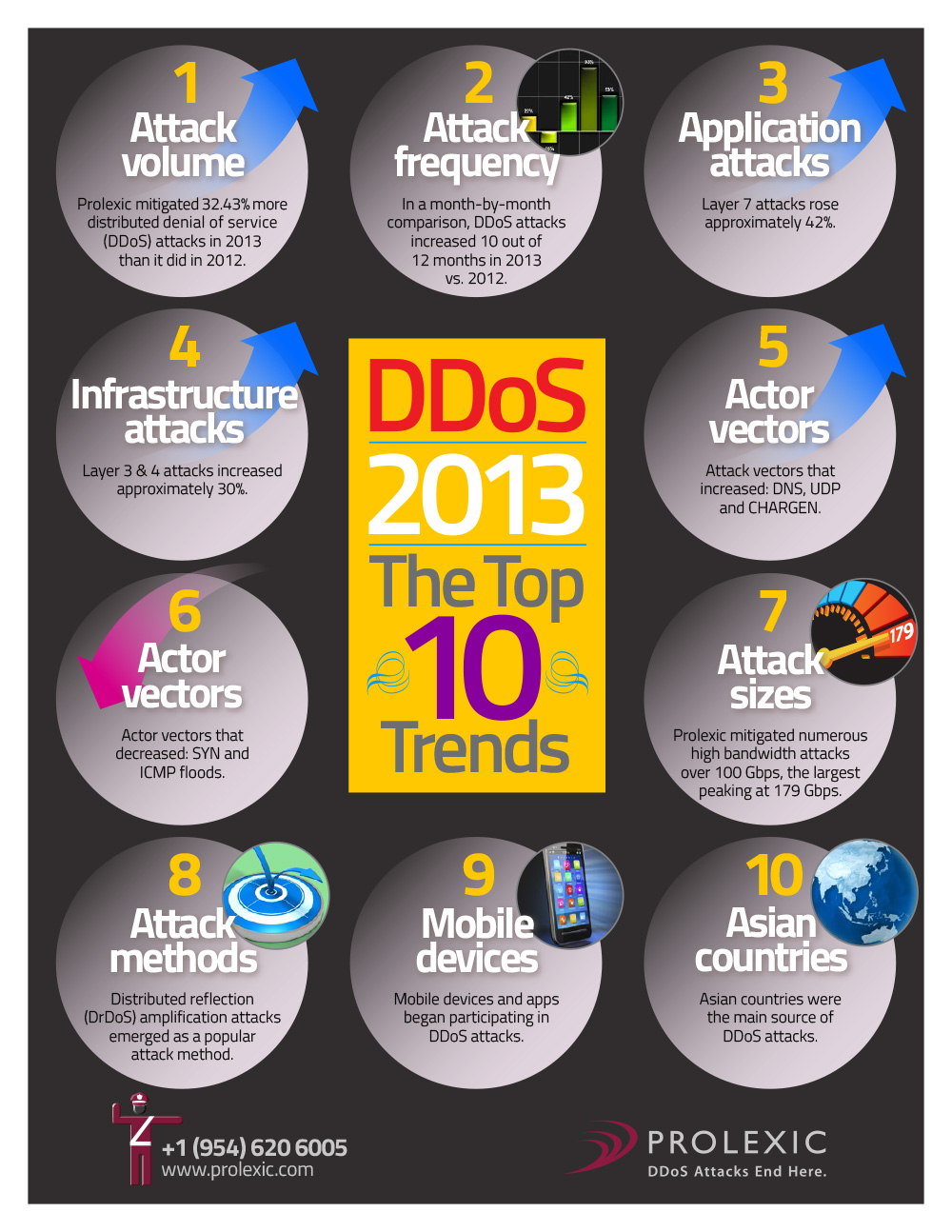 1. DDoS attack volume continued to rise with Prolexic mitigating 32.43 percent more attacks in 2013 than it did in 2012