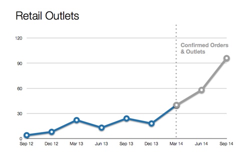 "We view the number of retailer's stocking our products as the prime indicator to sales momentum and health of the brand. We are pleased with the expansion of retail outlets and momentum, and expect the growth to continue through the balance of this year. Our long term objective is to grow our distribution similarly to market competitors we respect such as fast growing Vince (VNCE), which is in over 2,100 retail outlets and Zadig & Voltair which has had a similar growth path to our own." said CEO Ben Macpherson