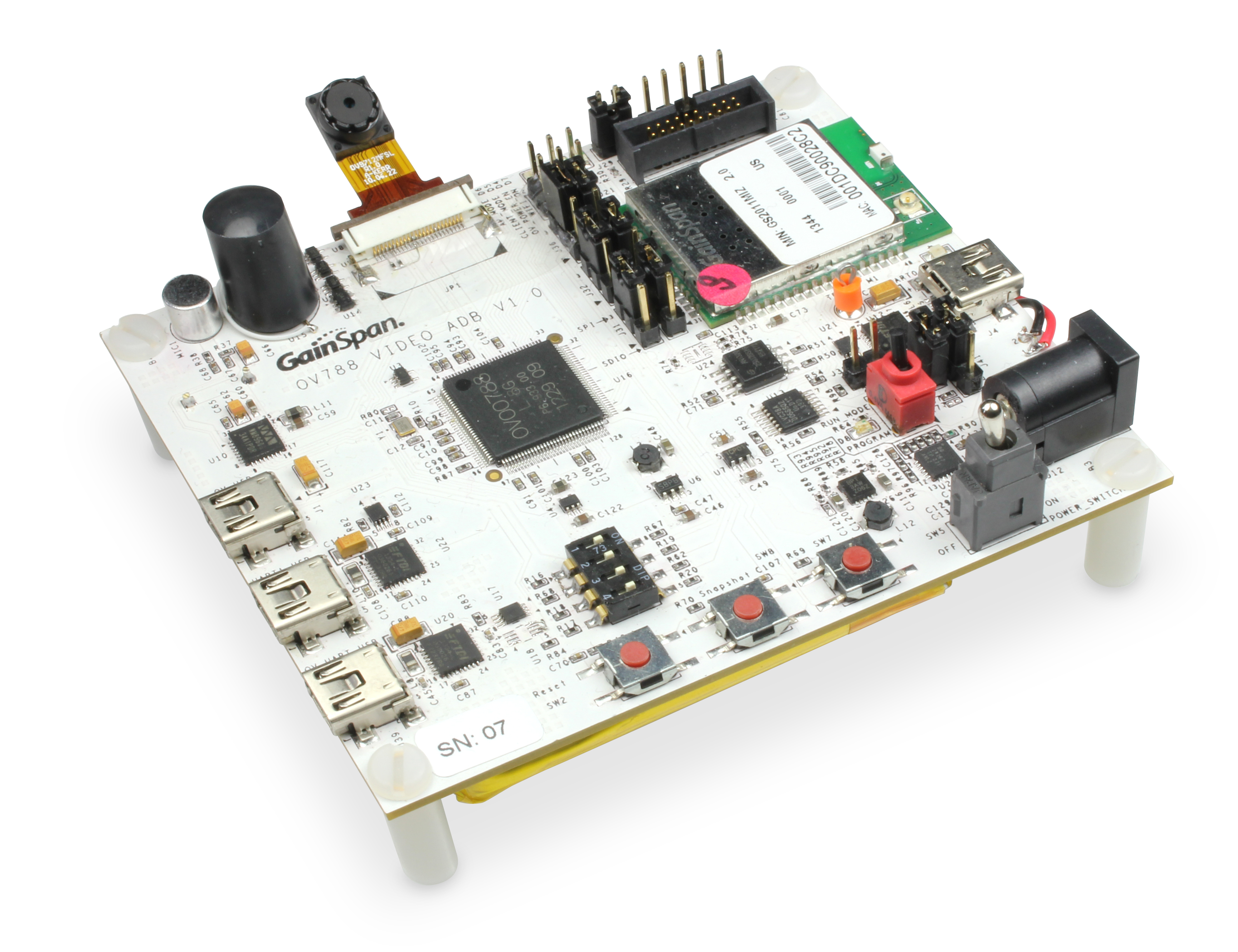 The new ADK leverages the key advantages of the GS2000 – high data rates supported in the 802.11 b/g/n SOC, multi-mode connectivity, extremely low standby current and low-power operation. The OmniVision OV9712 and OV788 combination features HD video encoding capabilities that result in excellent video capture in the most challenging lighting conditions.