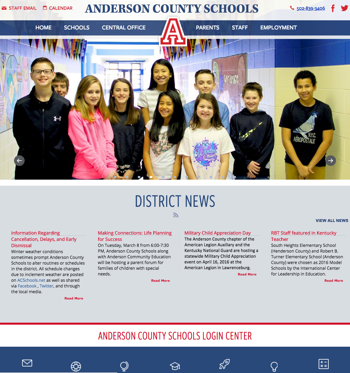 The site features a unique, tailor-made design created specifically for the K-12 Kentucky school district. Photos, news and a revamped toolbox for accessing frequently used links take center stage.