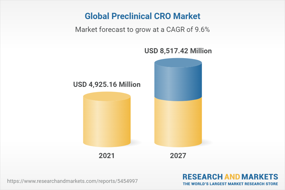 Dublin, Aug. 24, 2022 (GLOBE NEWSWIRE) -- The "Preclinical CRO Market Research Report by Services (Bioanalysis and DMPK Studies and Toxicology Testing), End-user, Application, Region (Americas, Asia-Pacific, and Europe, Middle East & Africa) - Global Forecast to 2027 - Cumulative Impact of COVID-19" report has been added to ResearchAndMarkets.com's offering.