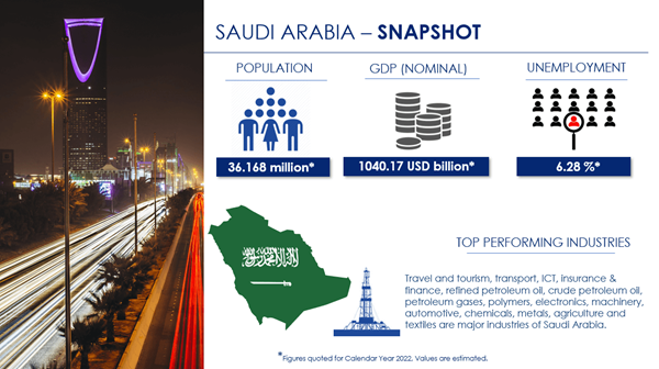 Dublin, Oct. 11, 2022 (GLOBE NEWSWIRE) -- The "Saudi Arabia Snapshot - PESTLE, SWOT, Risk and Macroeconomic Trends Analysis" report has been added to ResearchAndMarkets.com's offering.