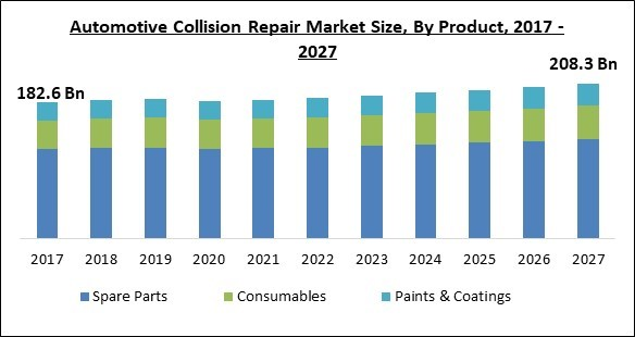 The Global Automotive Collision Repair Market size is expected to reach $208.3 billion by 2027, rising at a market growth of 1.9% CAGR during the forecast period.