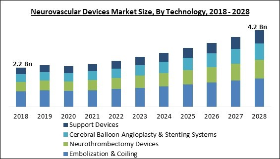 The Global Neurovascular Devices Market size is expected to reach $4.2 billion by 2028, rising at a market growth of 8.8% CAGR during the forecast period.