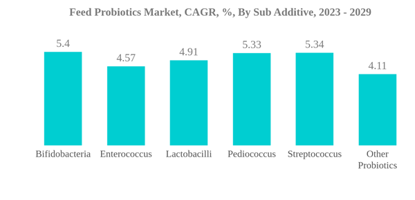 - Bifidobacteria is the Fastest-growing Sub Additive: Bifidobacteria is the fastest-growing segment, primarily due to its high consumption in Asia-Pacific. It helps reduce diseases like campylobacteriosis and promotes weight gain in animals.