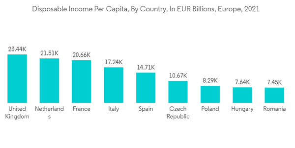 The average per capita purchasing power in Europe reached EUR 15,055 (approximately 16,072.94 USD) in 2021. Notably, disposable net income varies significantly among the 42 countries surveyed, with Liechtenstein, Switzerland, and Luxembourg boasting the highest disposable net incomes. Collectively, Europeans have around 10.2 trillion euros available for spending in 2021, with per capita purchasing power experiencing a nominal growth of 1.9 percent. This surge in disposable income is a significant driver for the Europe Event Management Industry.