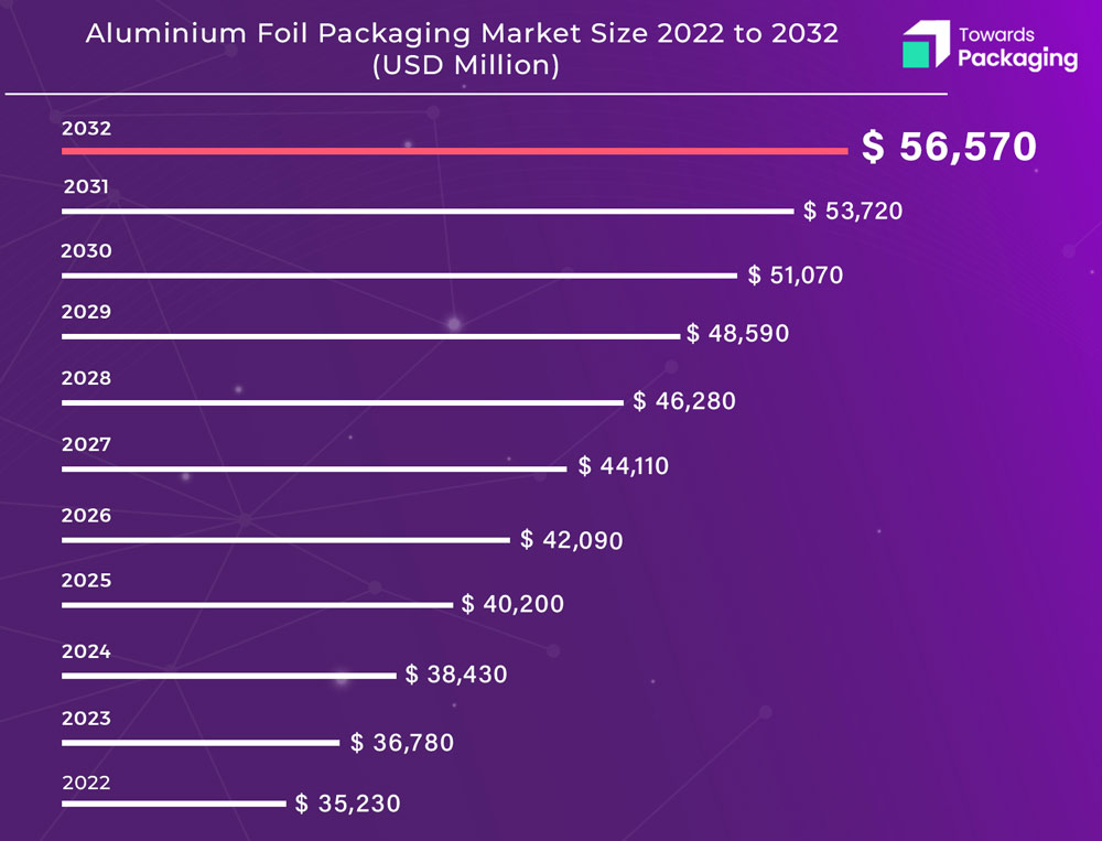 Ottawa, Sept. 25, 2023 (GLOBE NEWSWIRE) -- According to Precedence Research, the global aluminium foil packaging market in terms of revenue is poised to reach USD 46,280 million by 2028, growing at a CAGR of 4.9% from 2023 to 2032. Asia Pacific region has captured more than 42% of revenue share in 2022 and is predicted to record the maximum revenue share during the forecast period.