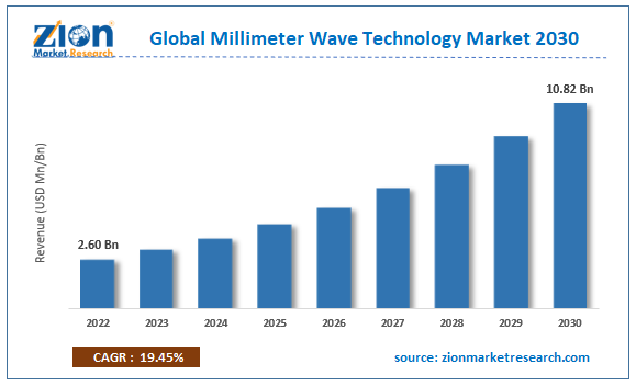 “According to the latest research study, the global millimeter wave technology market size was valued at about USD 2.60 billion in 2022. The market is expected to grow at a CAGR of 19.45% and is anticipated to reach a value of USD 10.82 billion by 2030.”