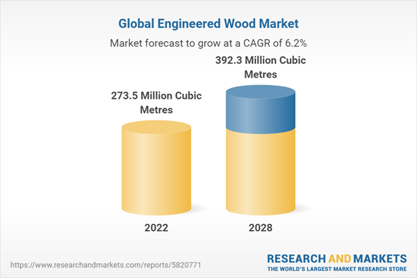 The global engineered wood market has achieved remarkable growth, reaching a size of 273.5 million cubic metres in 2022. A promising future lies ahead, with the market expected to surge to 392.3 million cubic metres by 2028, marking a substantial compound annual growth rate (CAGR) of 5.9% during the period from 2023 to 2028.