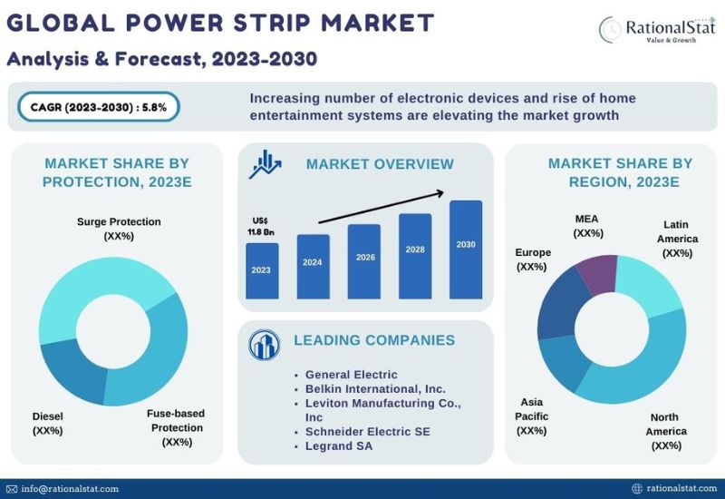 According to a deep-dive market assessment by RationalStat, the global power strip market has been analyzed on the basis of market segments, including type, protection, application and geography/regions (including North America, Latin America, Western Europe, Eastern Europe, Middle East & Africa, and Asia Pacific). The report also offers global and regional market sizing for the historical period of 2019-2022 and the forecast period of 2023-2030.