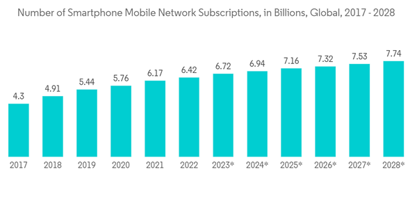 - Smartphones continue to be a significant growth aspect with projections from Ericsson indicating smartphone mobile network subscriptions rising from 6.42 billion in 2022 to 7.74 billion by 2028.