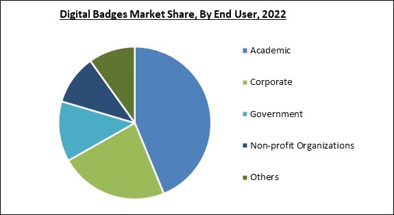 The report further categorizes the market based on offerings, splitting it into platform and services, and highlights the extensive services provided to facilitate the issuance of digital badges. These services include design, development, support, training, and consulting, which are essential for seamless operational integration. The government sector emerged as a significant adopter of digital badges in 2022. The standardization of skill recognition through digital badges in governmental organizations is expected to promote more efficient operations and personnel alignment with strategic missions.