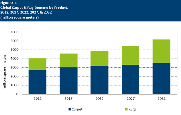 - Global Carpet & Rug Demand by Product, 2012, 2017, 2022, 2027, & 2032 (million square meters)