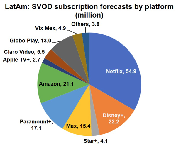 The principal analyst of the report said: "All of the major US platforms are very active in Latin America. Another dimension is added by local players such as Globo and Televisa [Vix]."