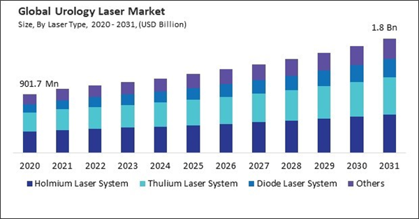 The Global Urology Laser Market size is expected to reach $1.8 billion by 2031, rising at a market growth of 6.3% CAGR during the forecast period.