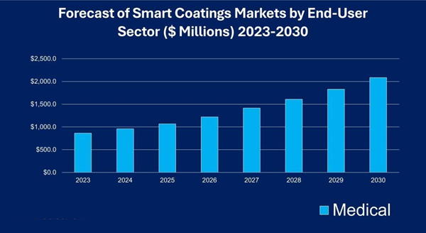 The report sizes and forecasts the use of smart coatings in medical markets and provides analysis of the drivers for them from both the coatings and med sector perspectives. It examines use cases for the coatings currently, how they are supporting key initiatives such as sustainability, environmental, efficiency, regulatory, improved service delivery and others related to the respective industries' usage.
