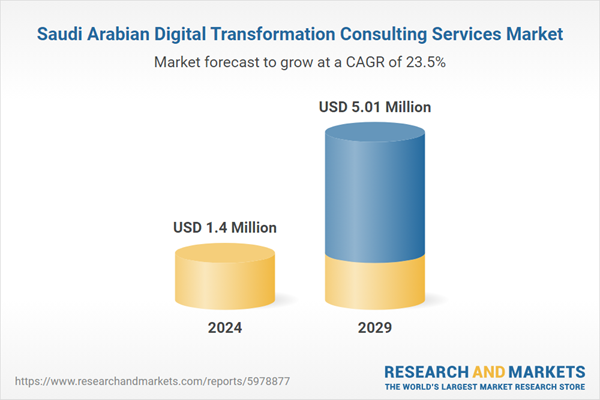 Dublin, July 05, 2024 (GLOBE NEWSWIRE) -- The "Saudi Arabia Digital Transformation Consulting Services Market, By Region, By Competition, Forecast & Opportunities, 2019-2029F" report has been added to ResearchAndMarkets.com's offering.