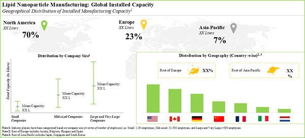 - The global installed lipid nanoparticle manufacturing capacity is spread across various geographies; majority of this capacity is installed in the production plants located in the US.