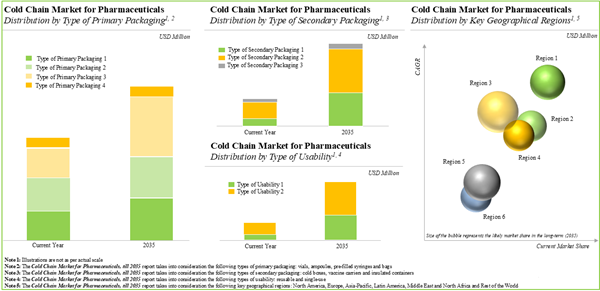 - Market Sizing and Opportunity Analysis: The report features an in-depth analysis of the cold chain market for pharmaceuticals, focusing on key market segments, including type of primary packaging, type of secondary packaging, type of usability and key geographical regions.