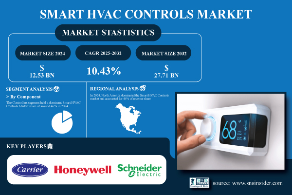 According to the SNS Insider,“The Smart HVAC Controls Market size was valued at USD 12.53 Billion in 2024 and is projected to reach USD 27.71 Billion by 2032, growing at a CAGR of 10.43% during 2025-2032.”