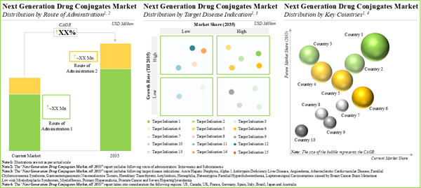 - Market Sizing and Opportunity Analysis: The report features an in-depth analysis of the next generation drug conjugates market, focusing on key market segments, including type of targeting ligand, type of payload, type of therapy, route of administration, target disease indication and key geographical regions.