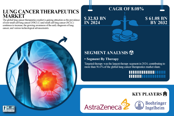 The global Lung Cancer Therapeutics Market is entering a period of accelerated expansion, fueled by groundbreaking advancements in immunotherapies, targeted drug development, and early diagnostic innovations. According to the latest industry analysis by SNS Insider, the lung cancer therapeutics market size was valued at USD 32.83 billion in 2024 and is projected to reach USD 61.08 billion by 2032, growing at a CAGR of 8.08% between 2025 and 2032.