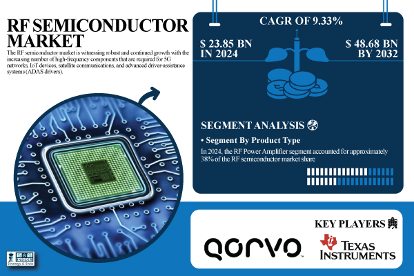 According to the SNS Insider,“The RF Semiconductor Market size was valued at USD 23.85 Billion in 2024 and is projected to reach USD 48.68 Billion by 2032, growing at a CAGR of 9.33% during 2025-2032.”