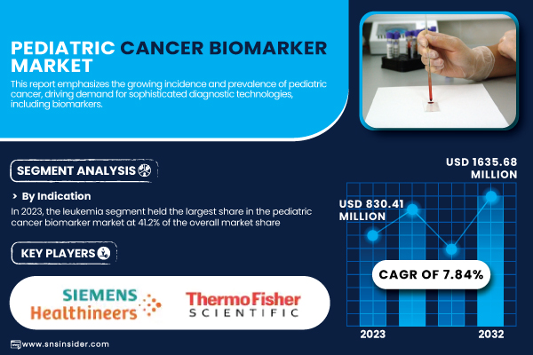 According to SNS Insider, the global pediatric cancer biomarker market was valued at USD 830.41 million in 2023 and is projected to reach USD 1,635.68 million by 2032, growing at a CAGR of 7.84% during the forecast period of 2024–2032. This growth is underpinned by the rising global burden of pediatric cancer, increased focus on precision oncology, and greater availability of non-invasive diagnostic tools.