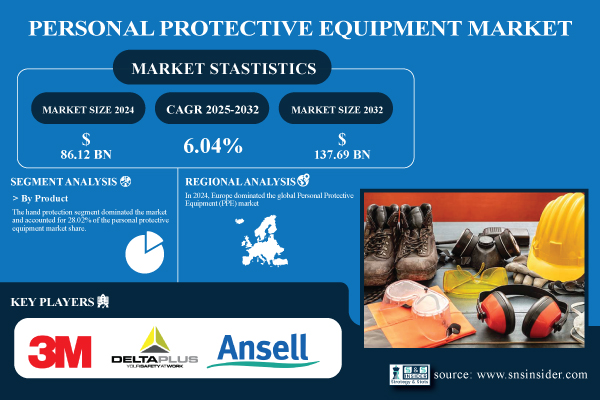 According to the SNS Insider,“The Personal Protective Equipment Market (Marché des équipements de protection individuelle) size was valued at USD 86.12 billion in 2024 and is expected to reach USD 137.69 billion by 2032, growing at a CAGR of 6.04% over the forecast period of 2025-2032.”