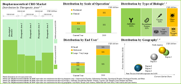 - The market is expected to grow at a CAGR of ~13% in the coming decade; the opportunity is likely to be well distributed across therapeutic areas, scales of operation, types of biologics, end users and geographical regions.