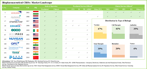 - Presently, 160 players claim to have the necessary capabilities to offer contract research services and clinical trial support for different types of biopharmaceutical products.